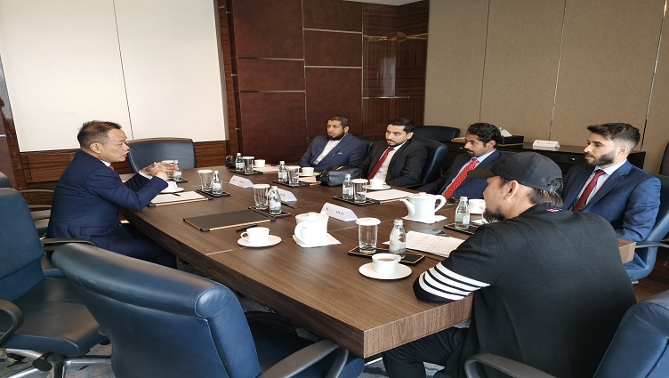 Recently, a group of five, including managing partners Mr. ALSAHLI, Mr. ABDULLAH FAHAD, CEO Mr. ALOTAIBI, FAHAD ADI, and the head of the Bahrain office, Mr. ALOTAIBI FAHAD ADI, visited the headquarters of Daxin Network in Beijing to exchange ideas on the development of Daxin Network in the Gulf countries region. Mr. Hu Yonghua, Chairman of Daxin Global, and Mr. Yue Hong, COO, met with guests and had a discussion at Daxin headquarters.
