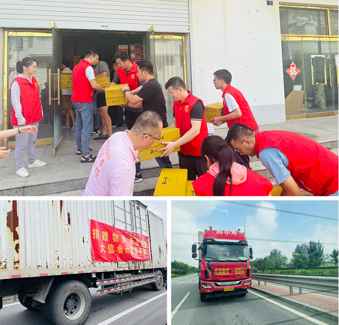 To assist in flood control and disaster relief, Daxin China Tianjin office immediately took action and contacted the government of Wangkou Town as soon as possible. After obtaining a detailed understanding of the urgently needed supplies on the front line of flood control and rescue, they quickly arranged for staff to organize procurement overnight and urgently loaded living supplies to the disaster area in the shortest possible time. They delivered nearly 2000 boxes of urgently needed supplies such as purified water, milk, self heating rice, biscuits, etc. to the frontline rescue personnel.